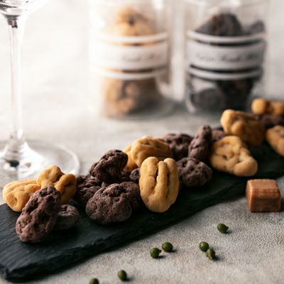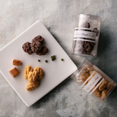 香ばしいペカンナッツを異なるチョコレートでコーティングし、2種類のフレーバーをご用意しました。