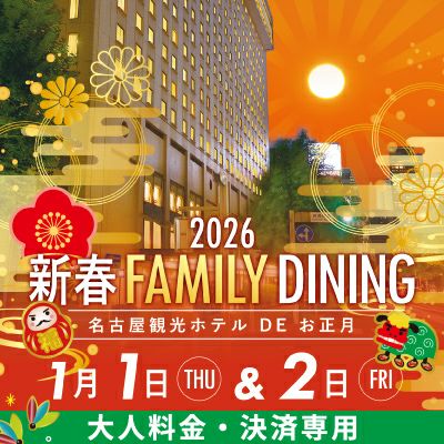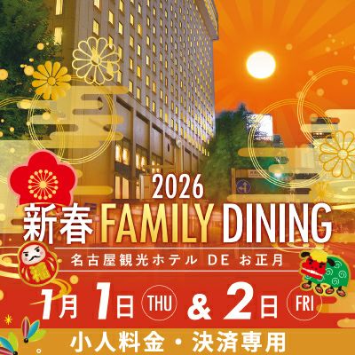 他の画像を見る 2026 新春 【決済専用】2026年1/1(木)・1/2(金)新春ファミリーダイニング-名古屋観光ホテルDEお正月-《大人料金》 販売価格 ¥ 10,000 税込 販売期間 2025/11/23 10:00 〜 2025/12/28 23:59 詳細を見る お気に入りに登録する